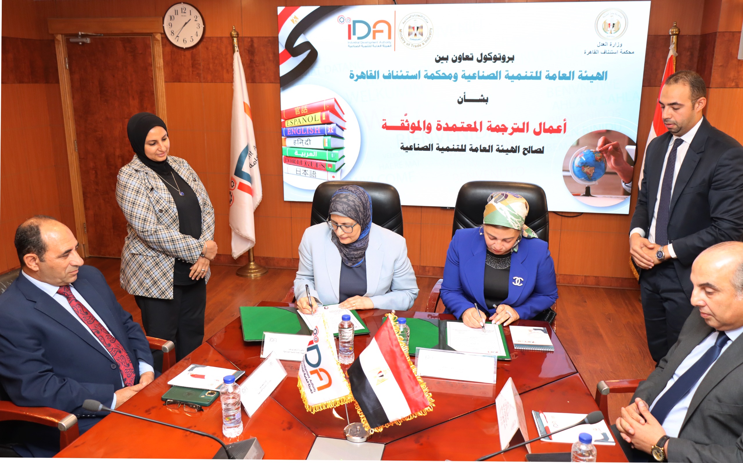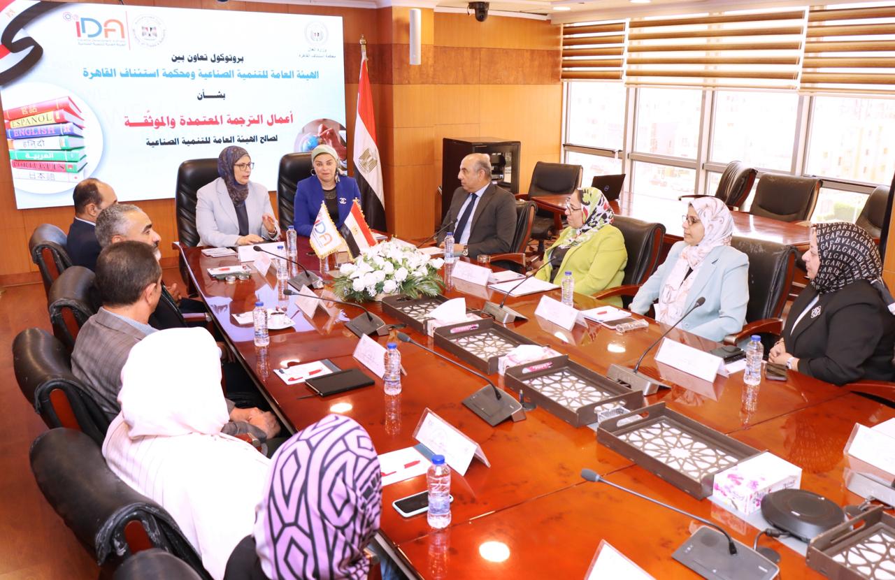في إطار الجهود المبذولة لتهيئة بيئة أعمال متكاملة وجاذبة لدعم وتحفيز الاستثمار الصناعي المحلى والأجنبي، وتذليل أى تحديات قد تواجه المستثمرين، وتلبية لطلباتهم؛ وقعت الدكتورة ناهد يوسف رئيس الهيئة العامة للتنمية الصناعية بروتوكول تعاون مع قسم الترجمة بمحكمة استئناف القاهرة، وقد مَثَّلها السيدة المستشارة جيهان البطوطى نائب رئيس محكمة الإستئناف وعضو المكتب الفني والمتابعة بالمحكمة، للقيام بتقديم خدمات ترجمة معتمدة وموثقة للمستندات والمحررات الخاصة بالمتعاملين مع الهيئة. حضر الاجتماع السيد المستشار سامح أبو كنة بمحكمة الإستئناف وعضو المكتب الفني للمحكمة، والسيد اللواء محمد سليم رئيس الإدارة المركزية لفروع وأقاليم الهيئة، والسيد اللواء لؤي فاروق رئيس الإدارة المركزية للموارد البشرية، والسيد اللواء إيهاب القطان رئيس الإدارة المركزية لنظم المعلومات والتحول الرقمي.