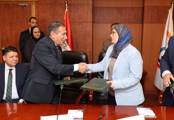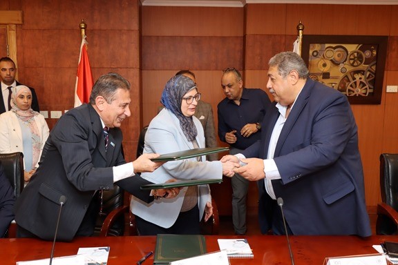 رئيس التنمية الصناعية تشهد توقيع عقد توسعة محطة المعالجة بالروبيكي بين شركة صرف القاهرة ومجموعة الخرافي