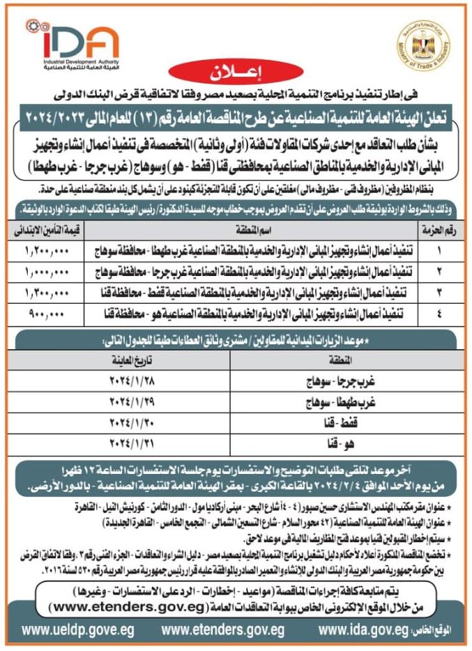 تعلن الهيئة العامة للتنمية الصناعية عن طرح كلا من: 1- ... المزيد
