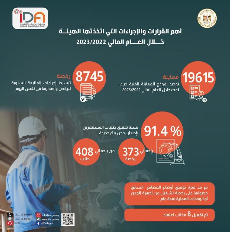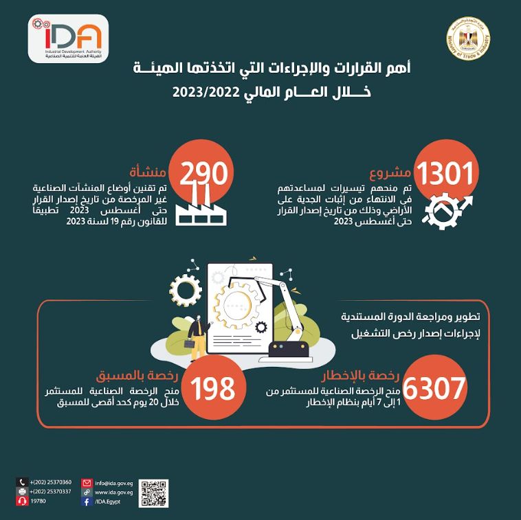 - - تم منح المشروعات الصناعية تيسيرات لمساعدتها في الانتهاء من إثبات الجدية على الأراضي أو الوحدات الصناعية المخصصة لها (بموجب قرار مجلس الوزراء بجلسته رقم (226) بتاريخ 25/1/2023 + قرار رئيس الهيئة (133) بتاريخ ( 12/2/2023).
